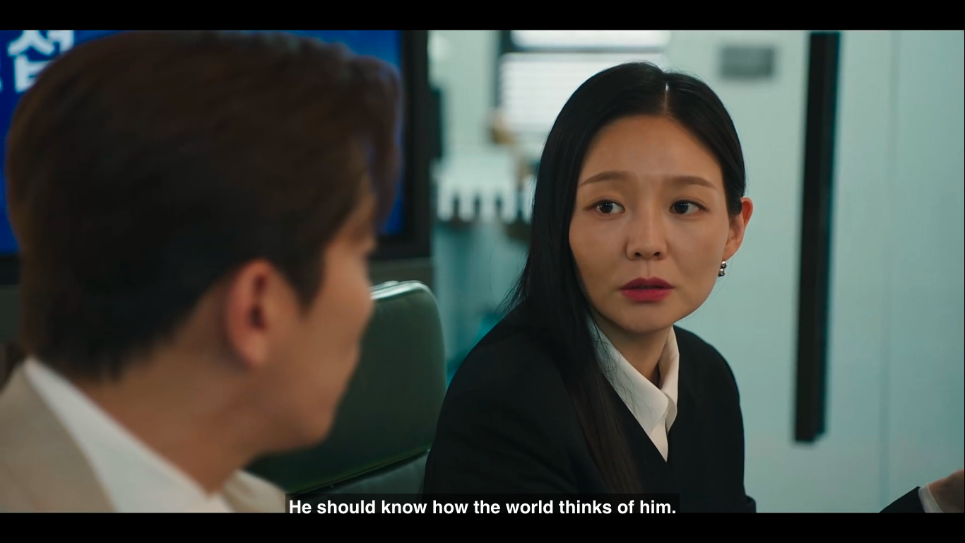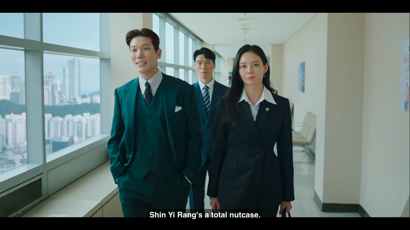 The legal battle that they have is both frustrating and hilarious, not only because I Rang ends up possessed by Kang Poong in the middle of the trial but because he ultimately fails to ace his first time at court. Furthermore, Han Na Hyun is no simple opponent. Although we only see glimpses of this woman’s story, we can expect to see a huge character development from her since, right now, she is basically the villain. Even more so, given that she is on Yang Do Kyung’s (Kim Kyung Nam) side, the CEO in her law firm, who appears nice and kind on the outside but hides a vicious personality.
